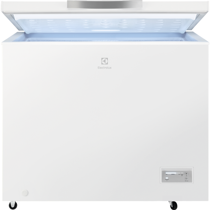 Холодильник має зручну панель управління з електронним керуванням, а також внутрішнє підсвічування для легкого доступу до вмісту. Його комфортно переміщати завдяки 4 колесам, а закрита кришка надає додаткову безпеку.