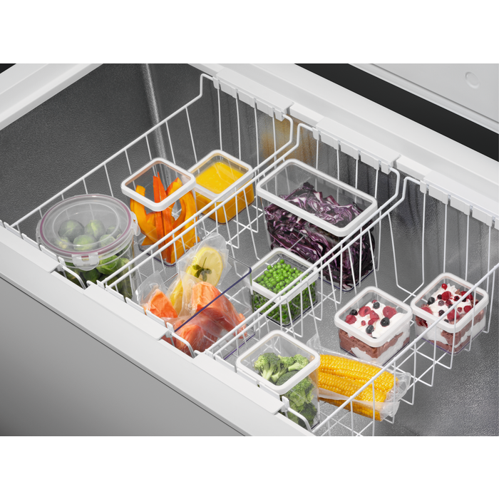 Об'єм морозильної камери становить 371 літр, що забезпечує достатньо місця для зберігання продуктів. Холодильник оснащений технологією Low frost, що зменшує утворення льоду, спрощуючи процес розморожування, який триває лише 46 годин. Завдяки Action Freeze, ви зможете швидко заморожувати продукти з автоматичним поверненням до звичайного режиму.