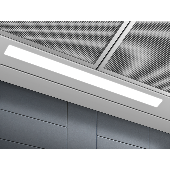 Новинка оснащена LED-освітленням з кольоровою температурою 3000 K, що ефективно висвітлює робочу поверхню. Механічне управління за допомогою тиснутих кнопок дозволяє легко налаштувати роботу витяжки. Крім того, оснащена чотирма металевими жировими фільтрами, які забезпечують високий клас жировідділення - 75.1%.