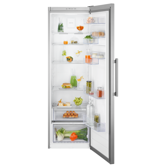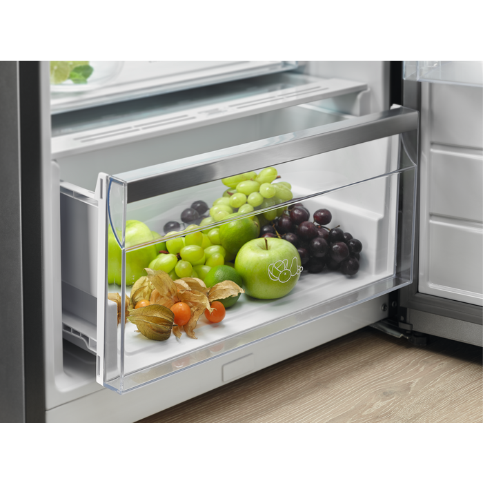 Electrolux LRC5ME38X2 - це сучасний холодильник, що вражає своїми характеристиками та енергоефективністю. Він має клас енергетичної ефективності E та споживає всього 121 кВт·год на рік, що дозволяє зберігати кошти на електроенергії. Холодильник являє собою вільностоячу модель з елегантним дизайном в сірому кольорі з нержавіючої сталі, що має антитенгове покриття, щоб підтримувати його зовнішній вигляд чистим і привабливим.