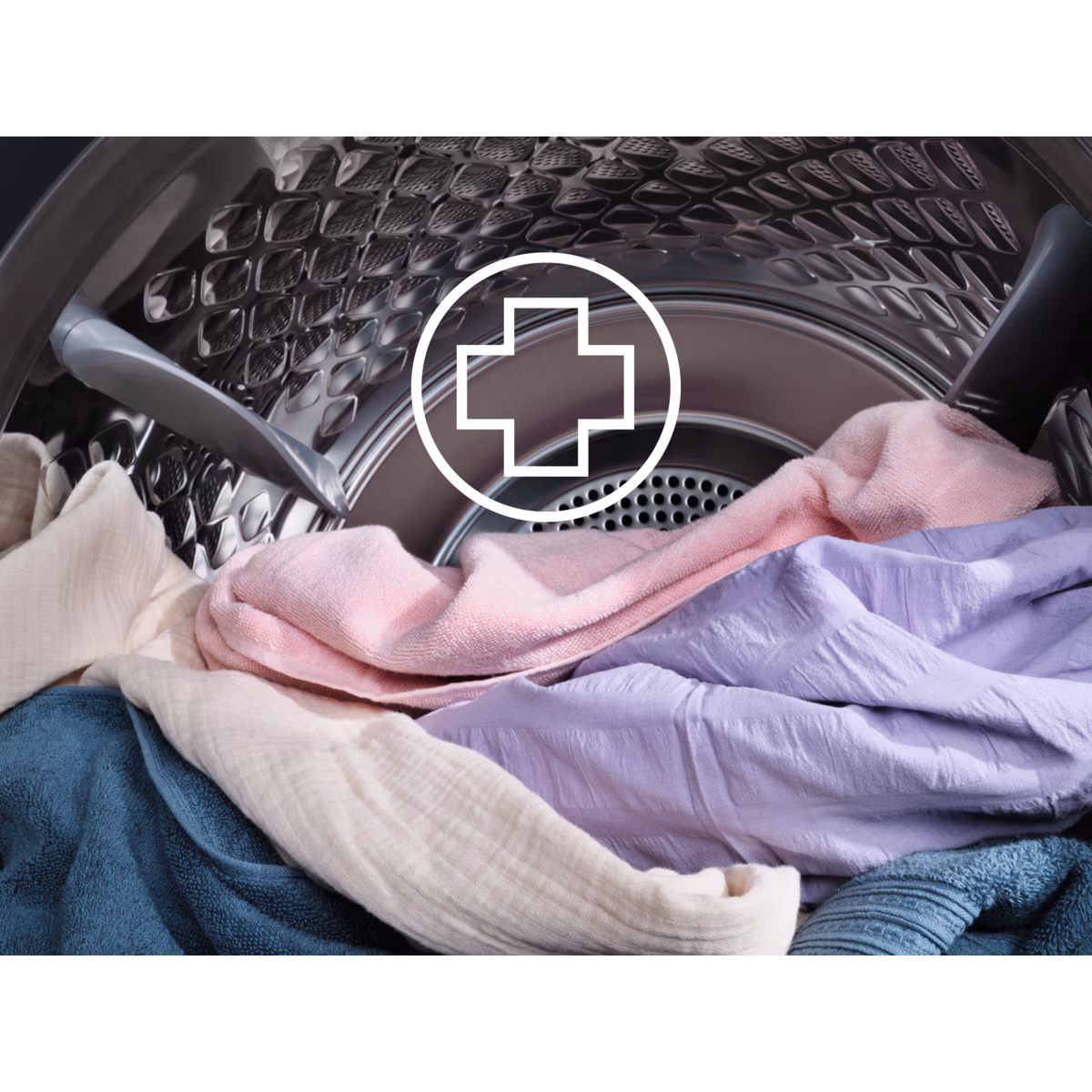 Ця модель обладнана системою сенсорного контролю, яка визначає, коли речі досягли необхідного рівня висушування, що допомагає уникнути пересушування. З різноманітними програмами сушіння, включаючи делікатне, спортивне та гігієнічне, ви з легкістю впораєтеся з будь-якими тканинами.
