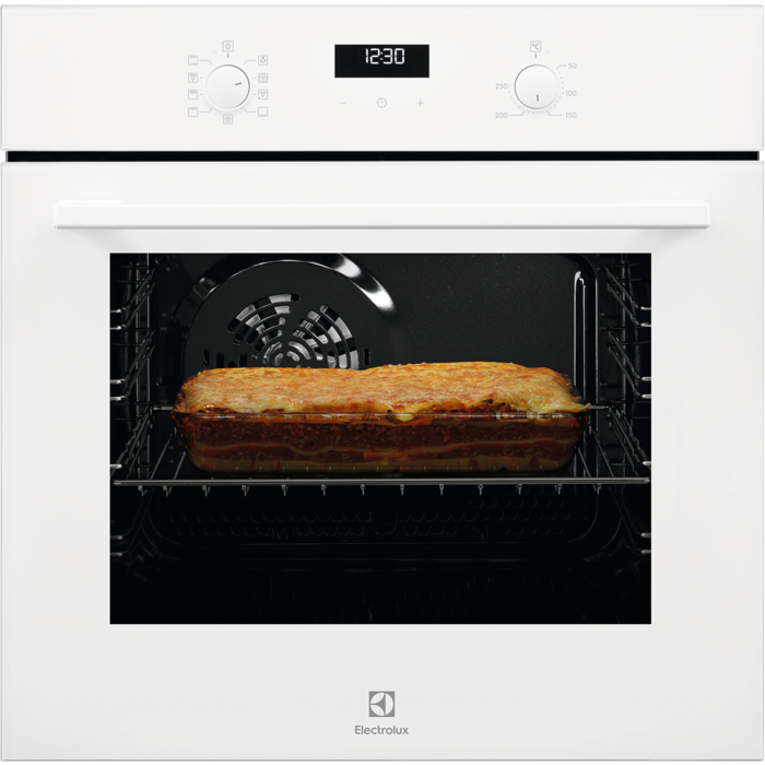 Завдяки кільцевому нагрівальному елементу, духова шафа забезпечує рівномірний розподіл тепла. Ви зможете скористатися такими режимами приготування, як нижній нагрів, традиційна кулінарія, розморожування, гриль та турбо-гриль. Помічник для приготування страв — вентилятор, який сприяє вологій конвекції, зберігаючи соковитість і смак продуктів.