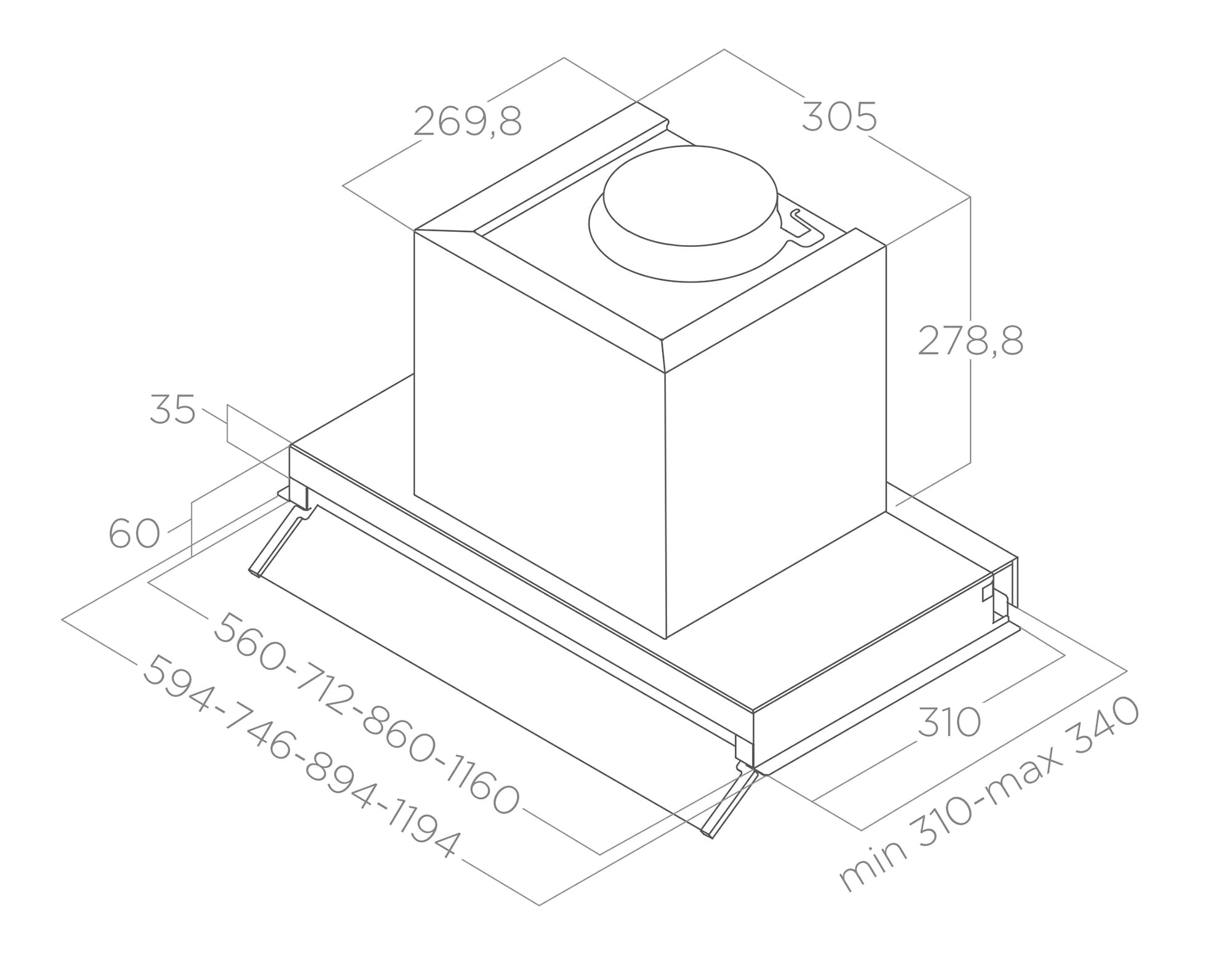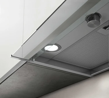 Витяжка інтегрується в інтер'єр вашої кухні, що дозволяє їй непомітно вписатися в загальний ансамбль приміщення. Повна інтеграція виглядає стильно та сучасно, підходячи під будь-який дизайнерський смак. Ви можете бути впевнені, що духова витяжка легко адаптується до ваших потреб.