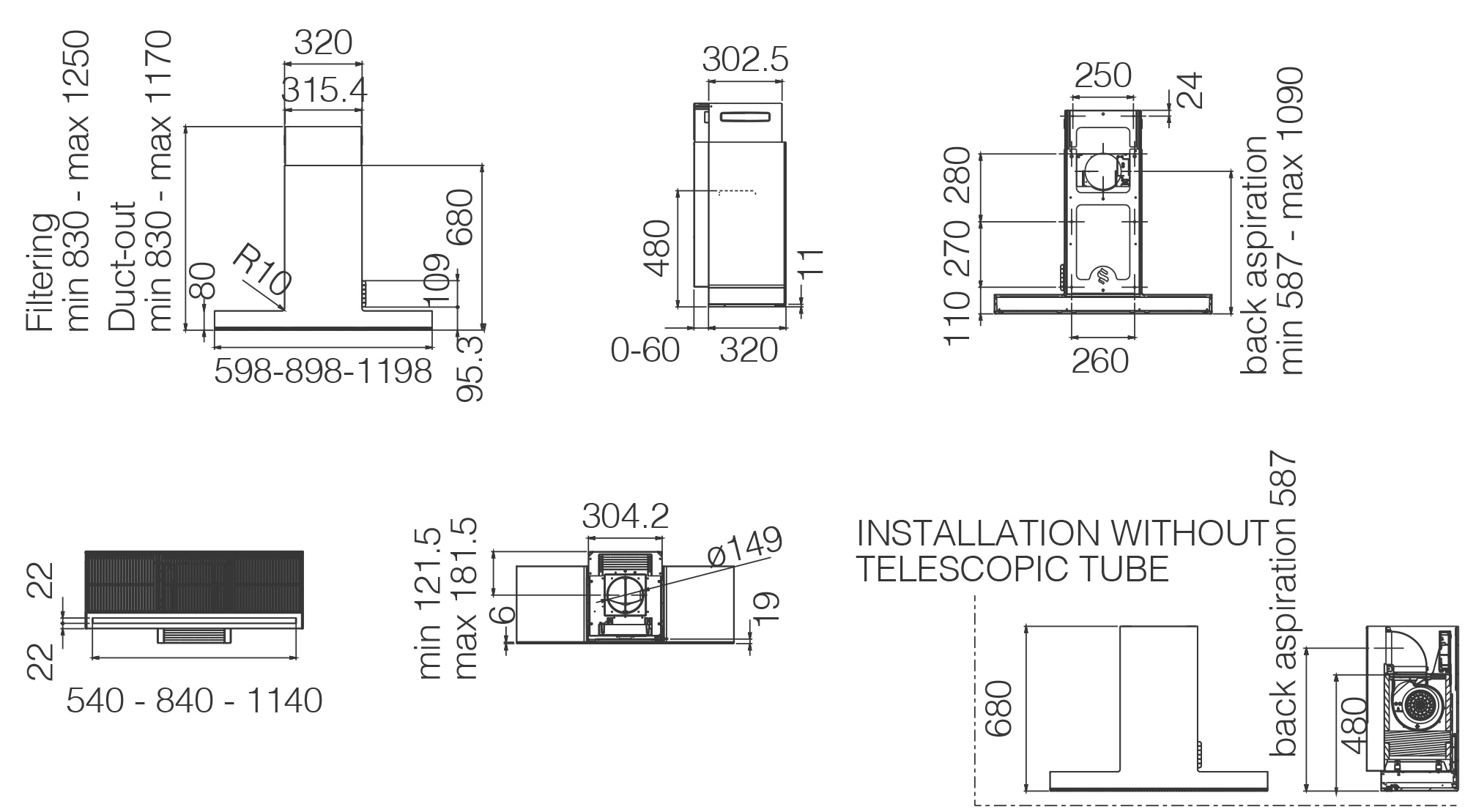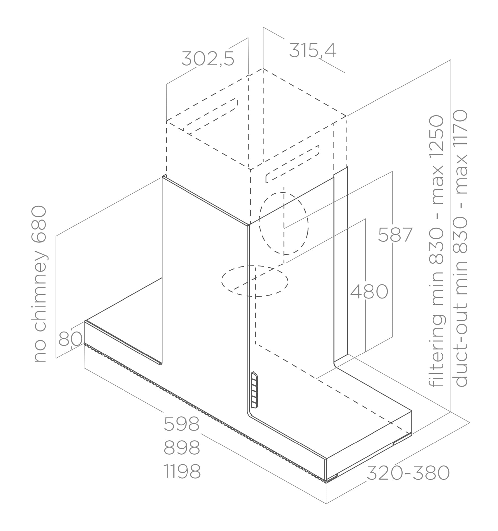 Ця модель має продуктивність від 155 м³/h до 690 м³/h, що забезпечує швидке видалення неприємних запахів та диму. Ви можете бути впевнені, що повітря в кухні завжди залишиться свіжим. Керування витяжкою здійснюється за допомогою електронного натискного кнопкового управління, що робить її використання зручним і простим.