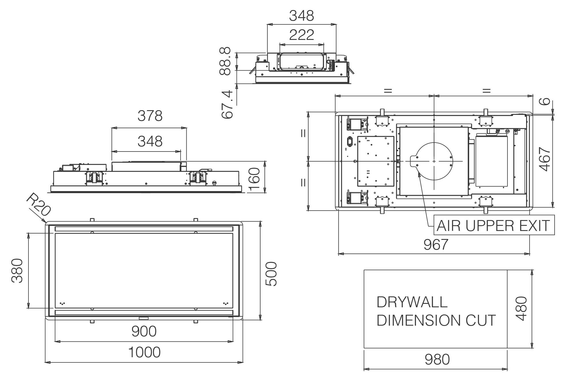Витяжка здатна по максимуму витягувати до 850 м³/год повітря, забезпечуючи підтримку свіжості в приміщенні. Для зручності користувача пристрій оснащено ліхтарем LED, потужністю 2x14 W, з можливістю регулювання відтінків освітлення від 2700 K до 5000 K.
