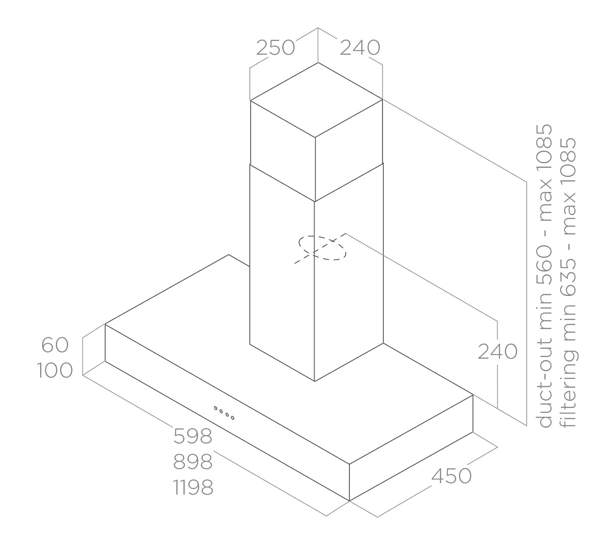 Завдяки механічним кнопкам управління, користувач отримує простий та інтуїтивно зрозумілий доступ до всіх функцій витяжки. Мінімальна відстань від витяжки до стінних одиниць з індукційною або радіантною варильною поверхнею становить 50 см, а для газових плит - 65 см, що робить її безпечною у використанні.