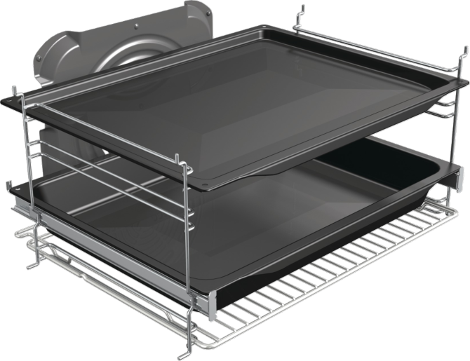 Внутрішня частина духовки покрита піролітичною емаллю Silver-matte, яка витримує високу температуру та легко очищується. Також, завдяки системі GentleClose, дверцята закриваються плавно і безшумно.