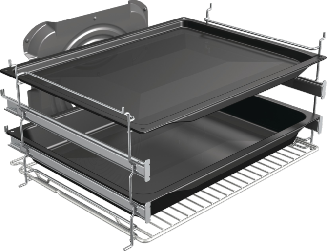 Духова шафа також обладнана **системою MultiFlow 360°**, що дозволяє готувати кілька страв одночасно на різних рівнях без змішування ароматів. Це можливе завдяки **двоконтурному грилю PerfectGrill** та потужним нагрівачам, що забезпечують відмінні результати випікання. **Функція швидкого попереднього нагрівання** дозволяє досягати температури 200 °C всього за 6 хвилин, що суттєво економить час.