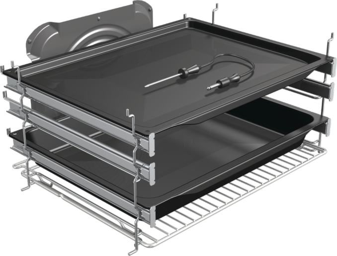 Духова шафа також оснащена MeatProbe для точного контролю температури м'яса, що дозволяє досягти ідеального приготування кожного разу. А завдяки швидкому попередньому нагріванню, яка за 6 хвилин досягає 200°C, ви зможете заощадити час на приготування улюблених страв. Крім того, DynamiCooling+ забезпечує ефективне охолодження зовнішніх панелей, що робить використання духового шкафа безпечним.