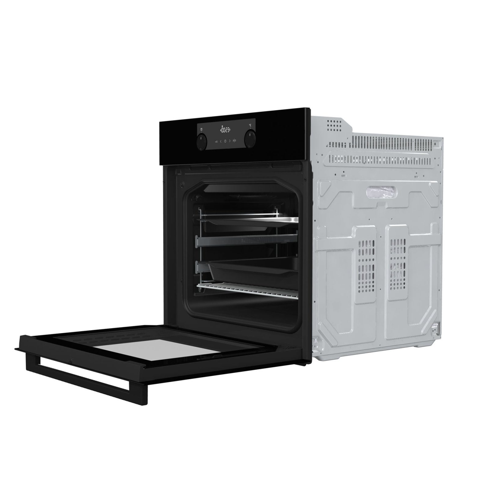 Духовка також оснащена системою DynaCooling+, яка охолоджує зовнішні стінки, запобігаючи перегріванню та забезпечуючи безпеку. А з функцією AquaClean прибирання стає легким і швидким — лише налийте воду на деко і увімкніть очищення, і ваша духовка буде виглядати як нова.
