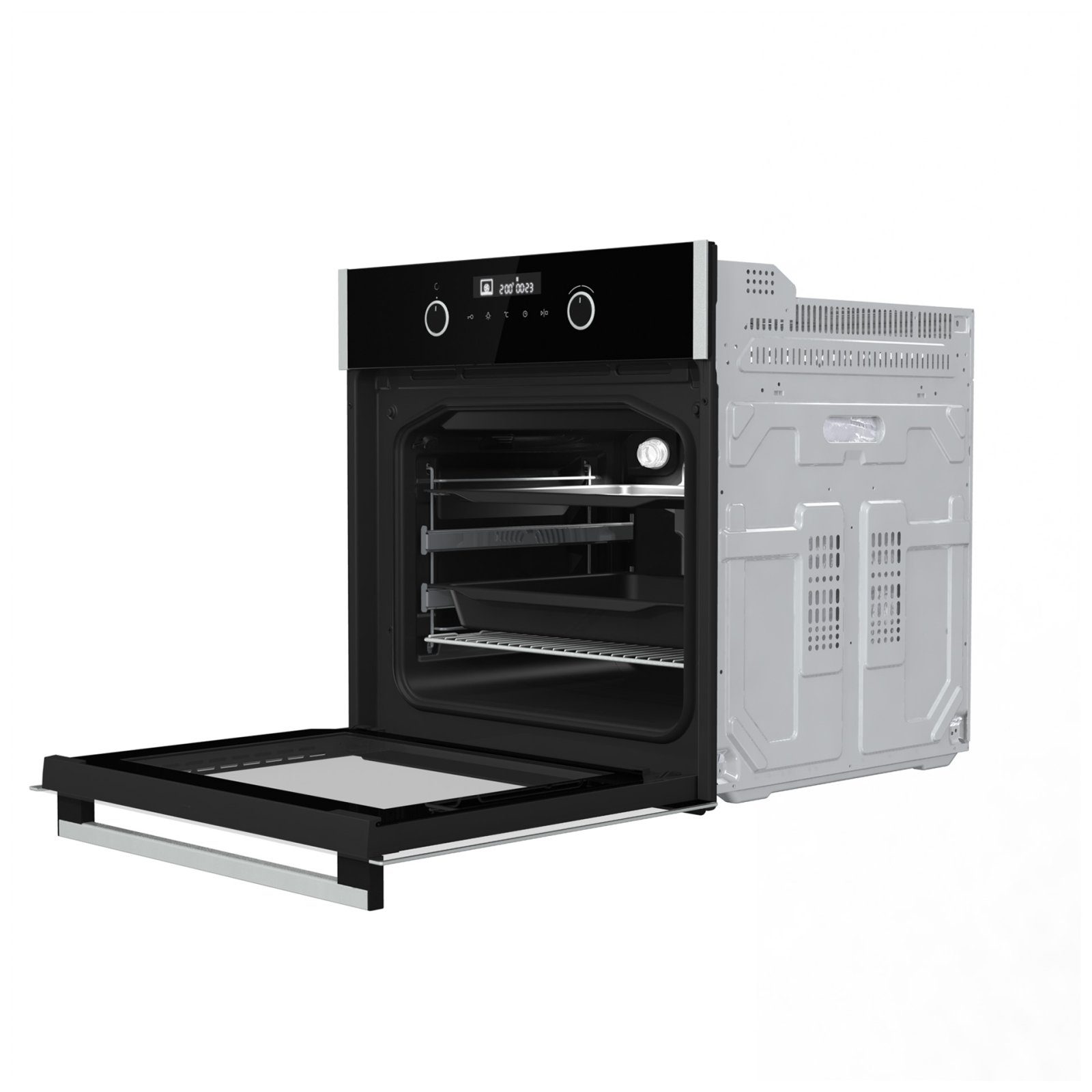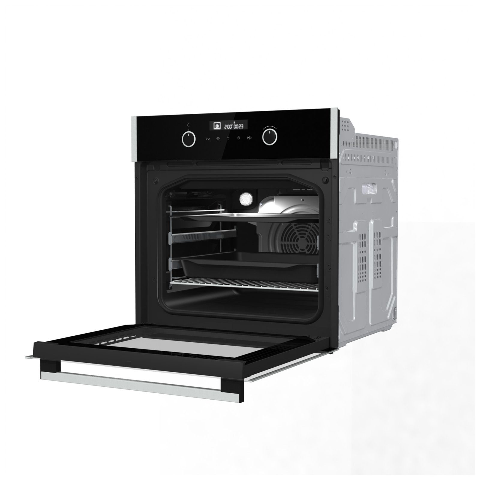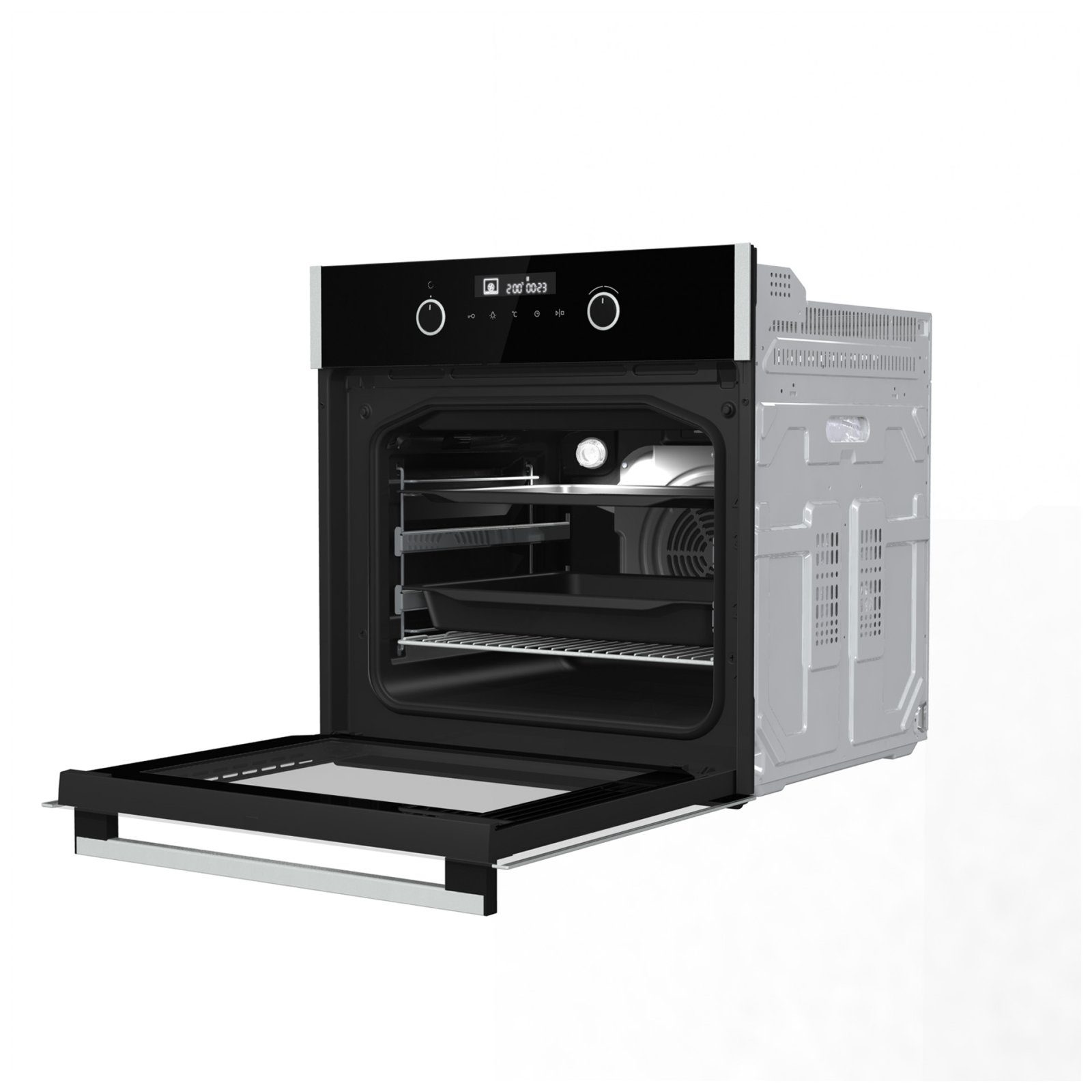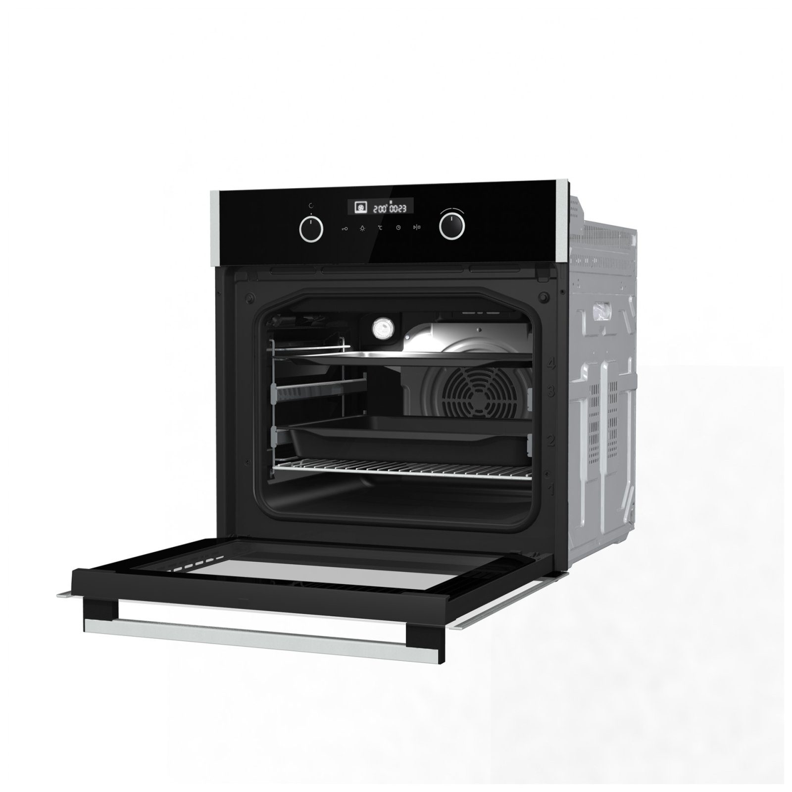 Форма HomeMade Plus створює оптимальні умови для циркуляції повітря, роблячи страви ніжними всередині та хрусткими зовні. Система DynamiCooling+ захищає зовнішні панелі, запобігаючи перегріванню, а GentleClose забезпечує безшумне закриття дверей духовки.