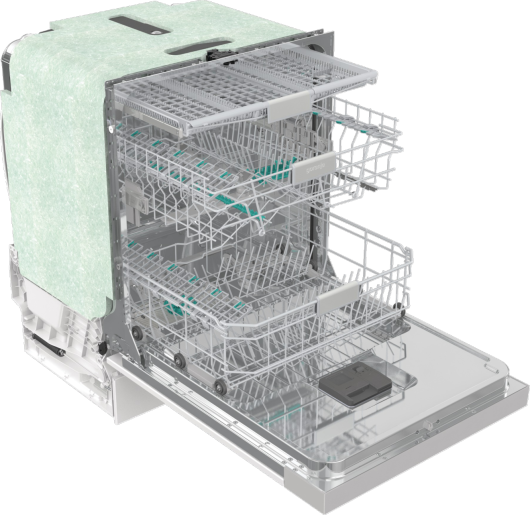 Завдяки інноваційній системі з трьох кошиків, ця модель може вмістити до 16 комплектів посуду. Висувний верхній кошик з регулюванням висоти і спеціальна шухляда для столового приладдя надають вам можливість легко і швидко завантажувати різні види посуду, навіть великі каструлі.