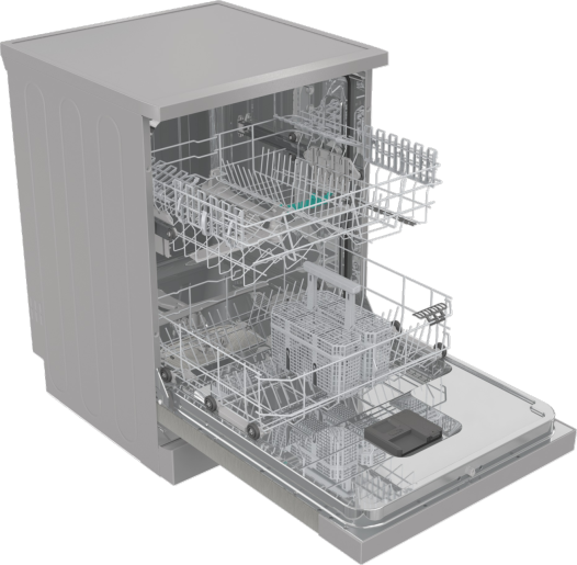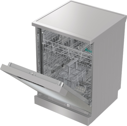 Завдяки технології AquaStop ви можете не турбуватися про протікання: у випадку витоку вода автоматично відключається. Внутрішня структура посудомийної машини включає висувний кошик для комфортного розміщення посуду, а ECO-програма гарантує ефективне використання ресурсів, знижуючи витрату води та електроенергії.