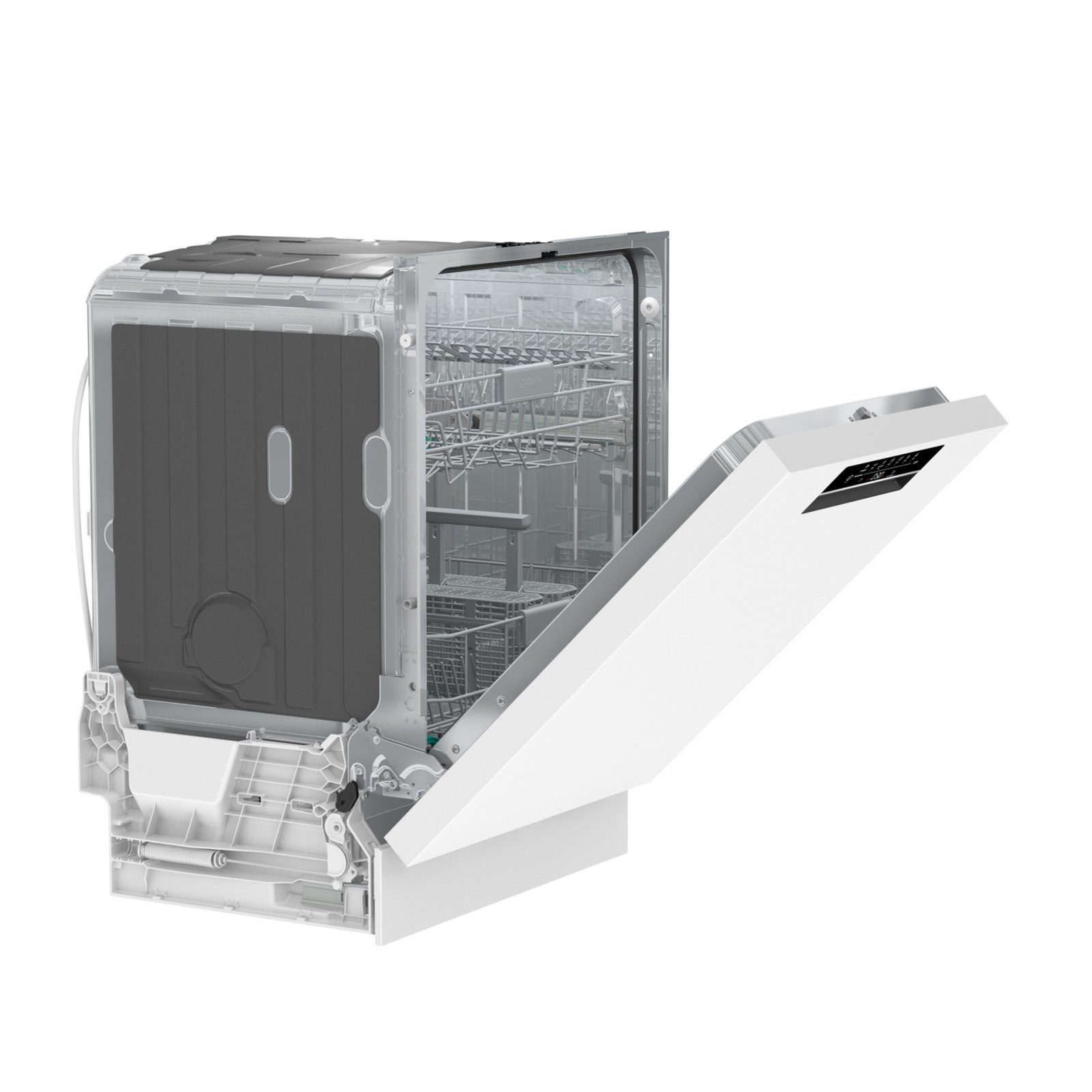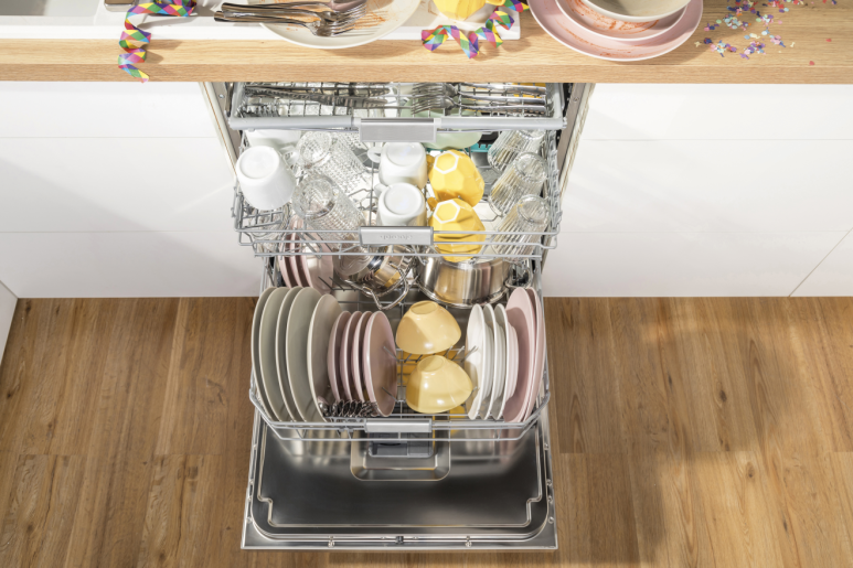 Навіть найбільші каструлі помістяться без труднощів, завдяки двоступеневій системі регулювання кошиків. Користувацький інтерфейс дозволяє легко обирати програми, а функція затримки старту дає змогу задати час запуску машини для зменшення витрат електроенергії.