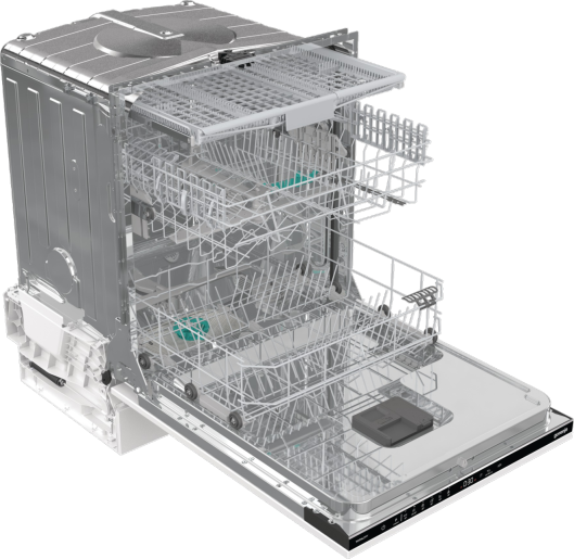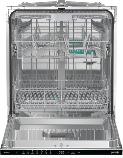 У Gorenje GV643D90 реалізовано **технологію TotalDry**, яка автоматично відкриває дверцята після завершення циклу, забезпечуючи ідеальне висушування посуду і зменшуючи витрати енергії до 20%. А з **інтелектуальним автоматичним програмуванням** ви зможете зекономити до 50% енергії, оскільки спеціальні сенсори визначають рівень забруднення.