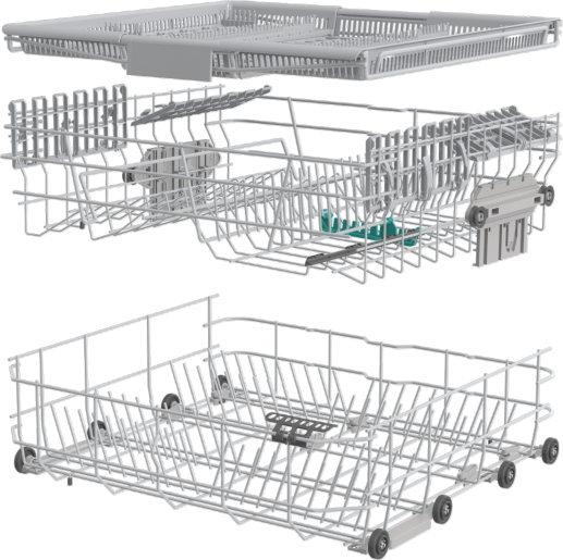 Машина сконструйована з усередненою звукоізоляцією, що забезпечує її роботу на рівні 47 дБ, а також має інтуїтивно зрозуміле сенсорне управління з LED-дисплеєм, що робить її використання надзвичайно зручним. Простора конструкція та продумане розташування кошиків дозволяють легко розміщувати навіть великі каструлі та тарілки.