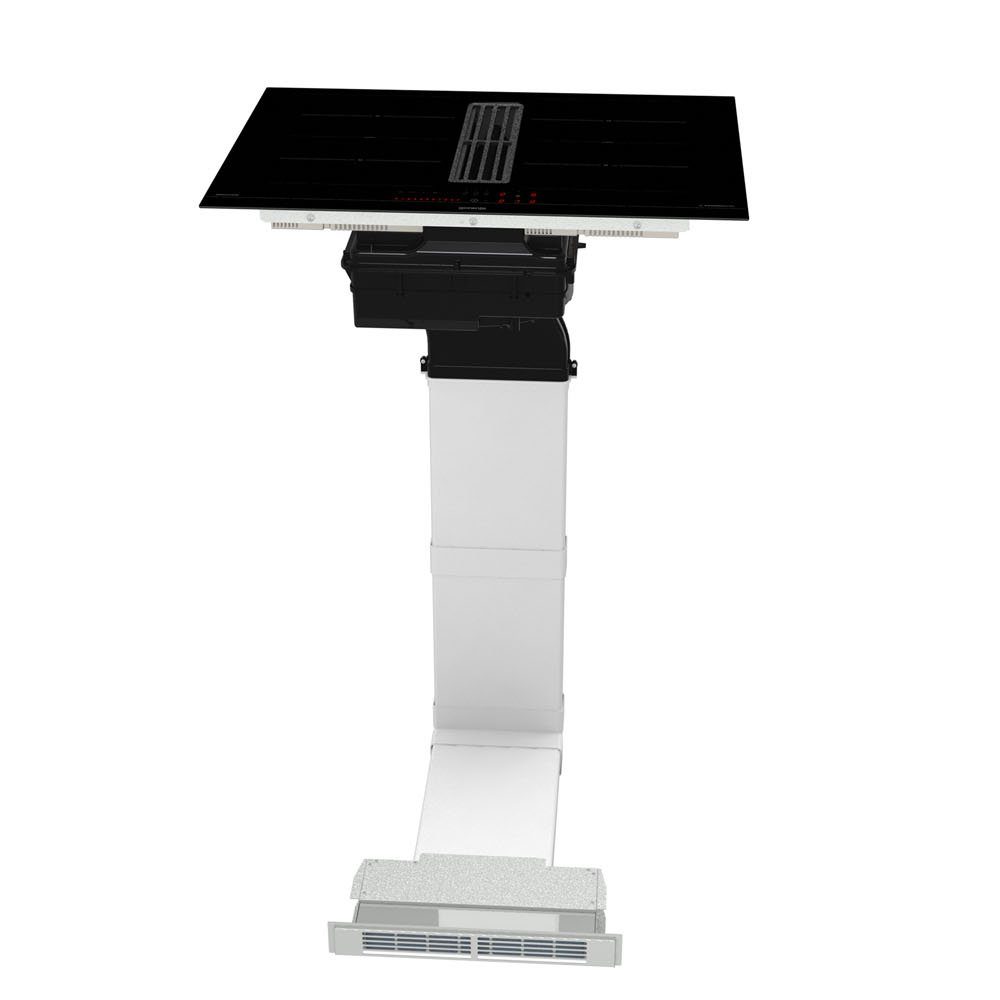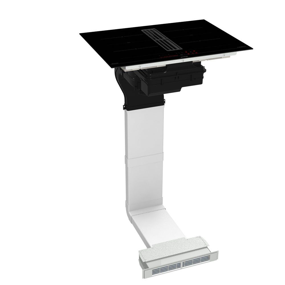 Щодо технічних характеристик, варильна поверхня має енергоефективність класу A++, ефективність у зборі жиру класу C, а також максимальну потужність відведення повітря у вентиляційному режимі 500 м³/год. Розміри варильної поверхні становлять 700x230x520 мм, що забезпечує її зручність та універсальність в установці.
