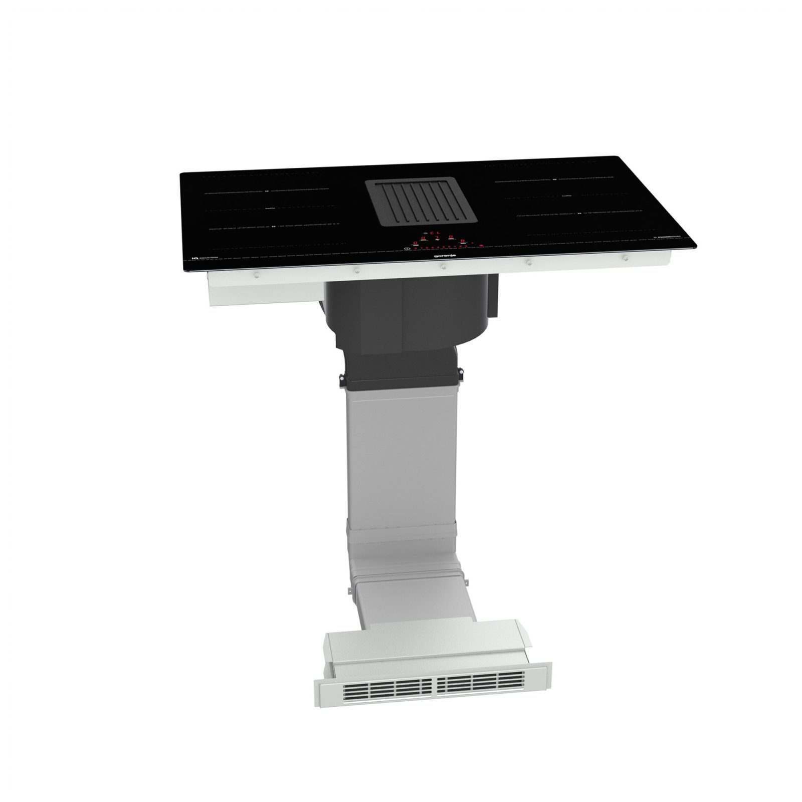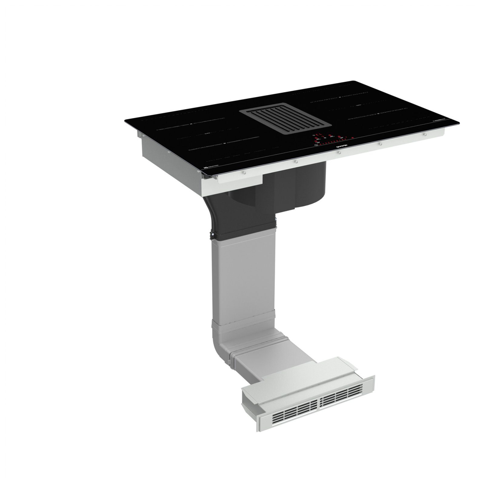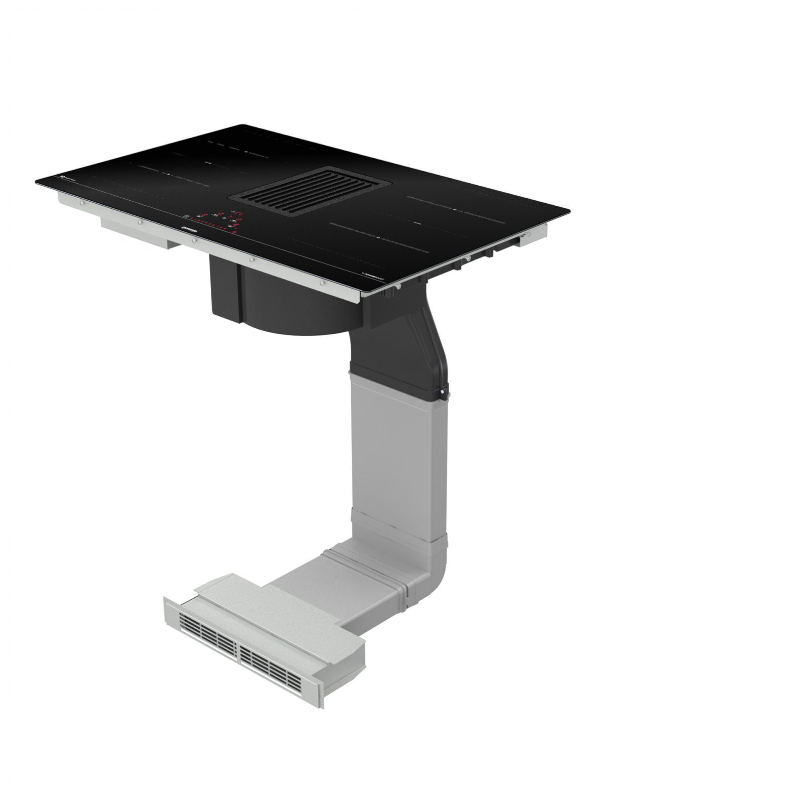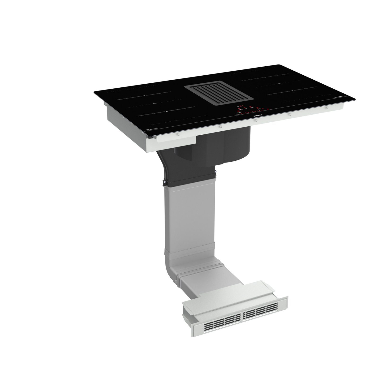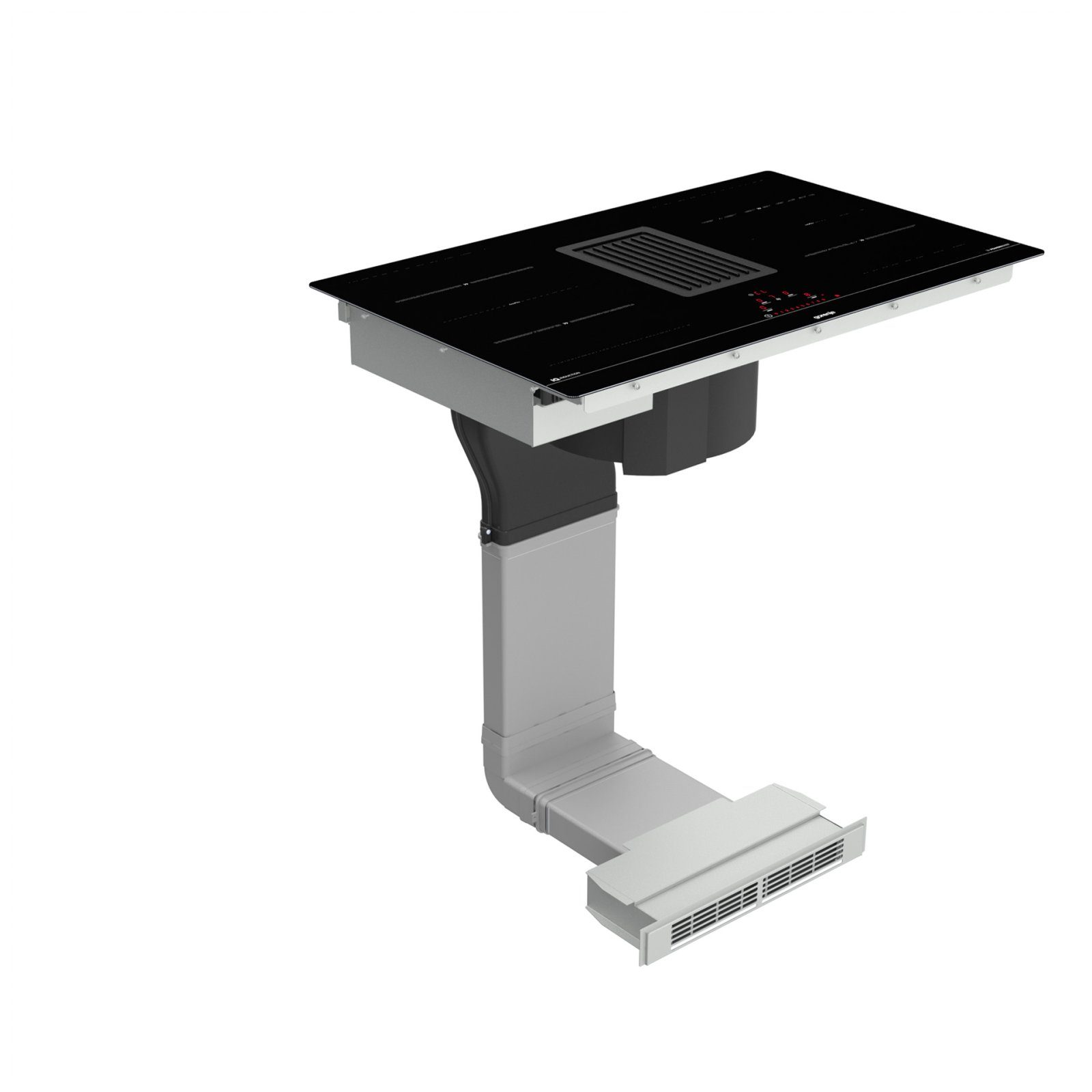 Крім цього, варильна поверхня оснащена системою відведення пари та запахів, яка може працювати в режимі відведення або рециркуляції повітря. Вбудовані індикатори показують час очищення фільтра від жиру та потребу у заміні вугільного фільтра. Функція Countdown-Timer дозволяє встановити таймер на до 99 хвилин для автоматичного вимкнення плити після закінчення приготування.