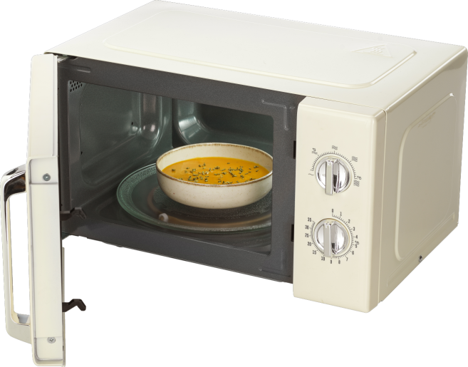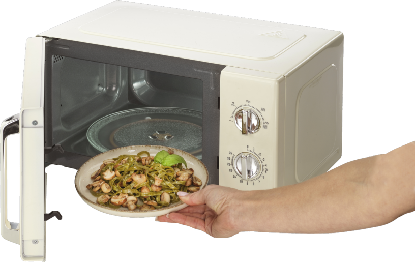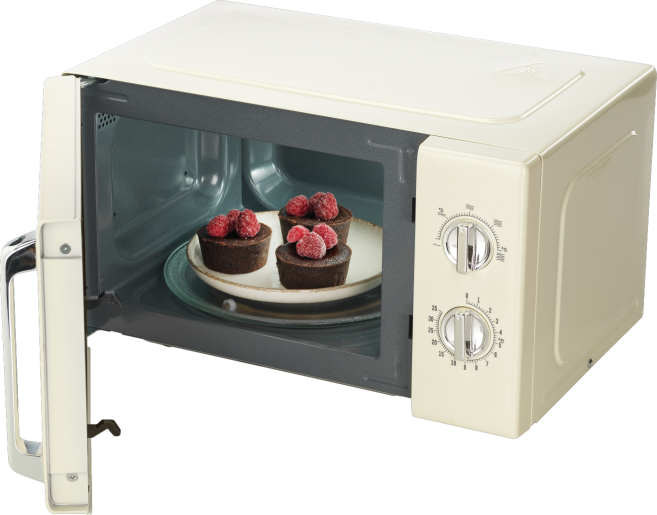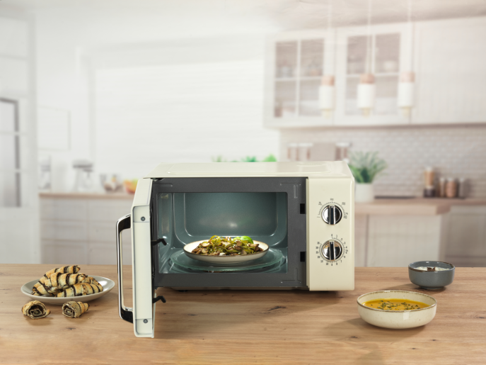 Мікрохвильова піч працює з потужністю в 700 Вт та має 5 рівнів потужності, що дозволяє налаштовувати максимальну ефективність приготування. Крім того, модель пропонує функцію розморожування за часом та вагою, що спростить приготування заморожених продуктів.