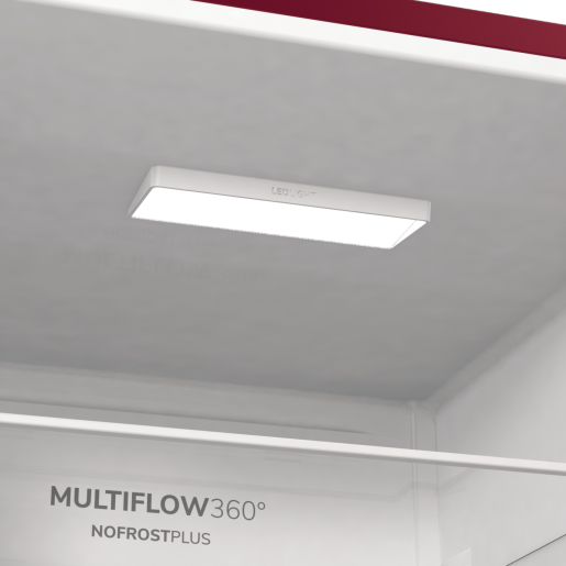 Модель оснащена технологією NoFrost Plus, що запобігає утворенню льоду у морозильній камері, що означає відсутність необхідності відтаювання та нижчий рівень споживання електроенергії. Завдяки інверторному компресору холодильник працює тихо, знижуючи коливання температури, що дозволяє зберігати продукти свіжими.