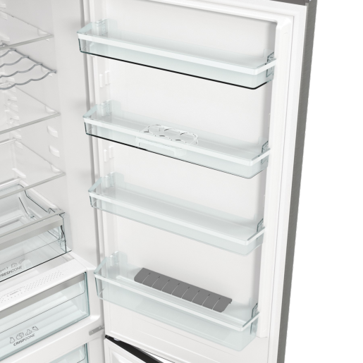 Gorenje NRK6202AXL4 - сучасний холодильник, який поєднує в собі елегантний дизайн і передові технології. Завдяки інноваційній технології AdaptTech ваш холодильник стане розумним помічником, який запам'ятовує ваші звички і підтримує стабільну температуру всередині, незалежно від частоти відкривання дверцят. Ця система не лише заощаджує електроенергію, а й продовжує термін зберігання продуктів.