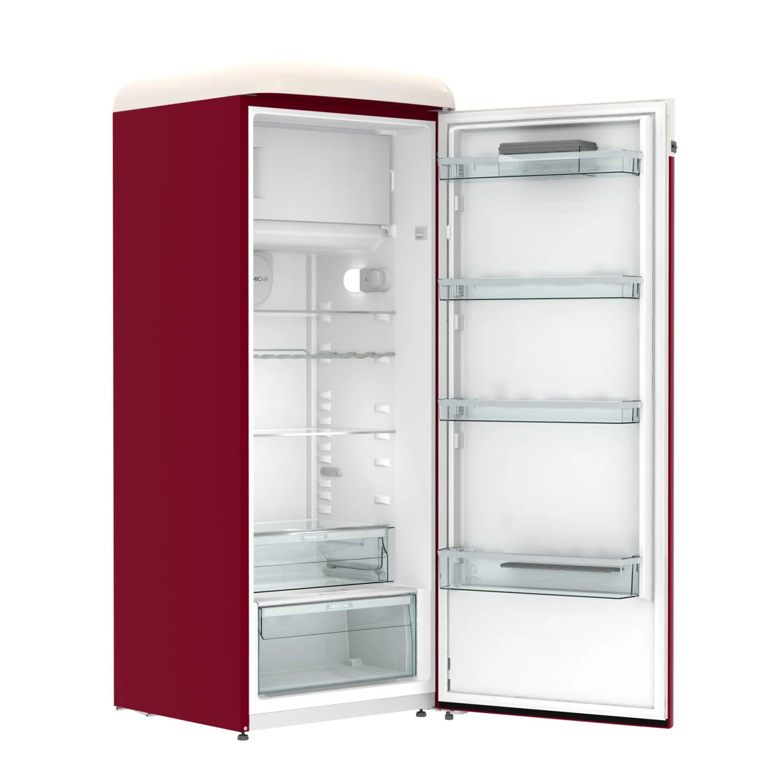 Холодильник Gorenje OBRB615DR має безліч особливостей, включаючи **електронне управління** та **автоматичне розморожування**, що спрощує його використання. Його **інверторний компресор** працює тихо (всього 38 дБ), забезпечуючи комфорт під час експлуатації. Завдяки сучасному дизайну та кольоровому оформленню у бордовому відтінку, цей холодильник стане чудовим доповненням до будь-якої кухні.