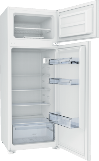 Об'єм холодильника складає 205 л, з яких 169 л призначено для свіжих продуктів. Вологостійкість та сучасна теплоізоляція забезпечують оптимальні умови зберігання їжі. У холодильному відділі є три висувні скляні полиці, що легко регулюються за висотою, а також LED підсвітка, яка забезпечує чудову видимість ваших продуктів. Додатково до цього, холодильник має дві межі для зберігання яєць та льоду, що додає зручності при користуванні.