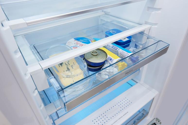 Полиця CrispZone відзначається автоматичним контролем вологості, що допомагає зберігати овочі та фрукти свіжими протягом тривалого часу. Завдяки особливому світлу VitaLight продукти залишаються хрусткими та зберігають вітаміни.