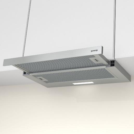 Gorenje TH60E3X також вирізняється своєю ефективністю при низькому рівні шуму. Завдяки новітнім технологіям та матеріалам, що поглинають звук, ви зможете готувати без зайвого галасу. Витяжка має три швидкісні режиму роботи з максимальним потоком повітря в 350 м³/год, що забезпечує вичерпну очистку повітря в кухні.