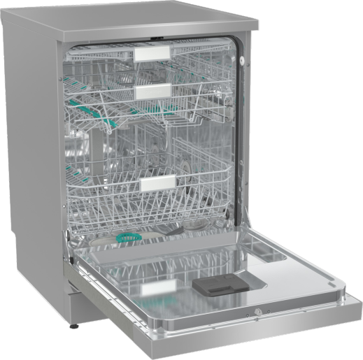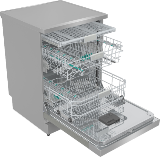 Ця модель має три кошики, що забезпечують можливість миття до 16 комплектів посуду одночасно, при цьому FlexUse система дозволяє легко налаштовувати внутрішній простір для посуду будь-якого розміру. Вона також оснащена TotalDry функцією, що автоматично відкриває дверцята після завершення програми для максимального висушування посуду.