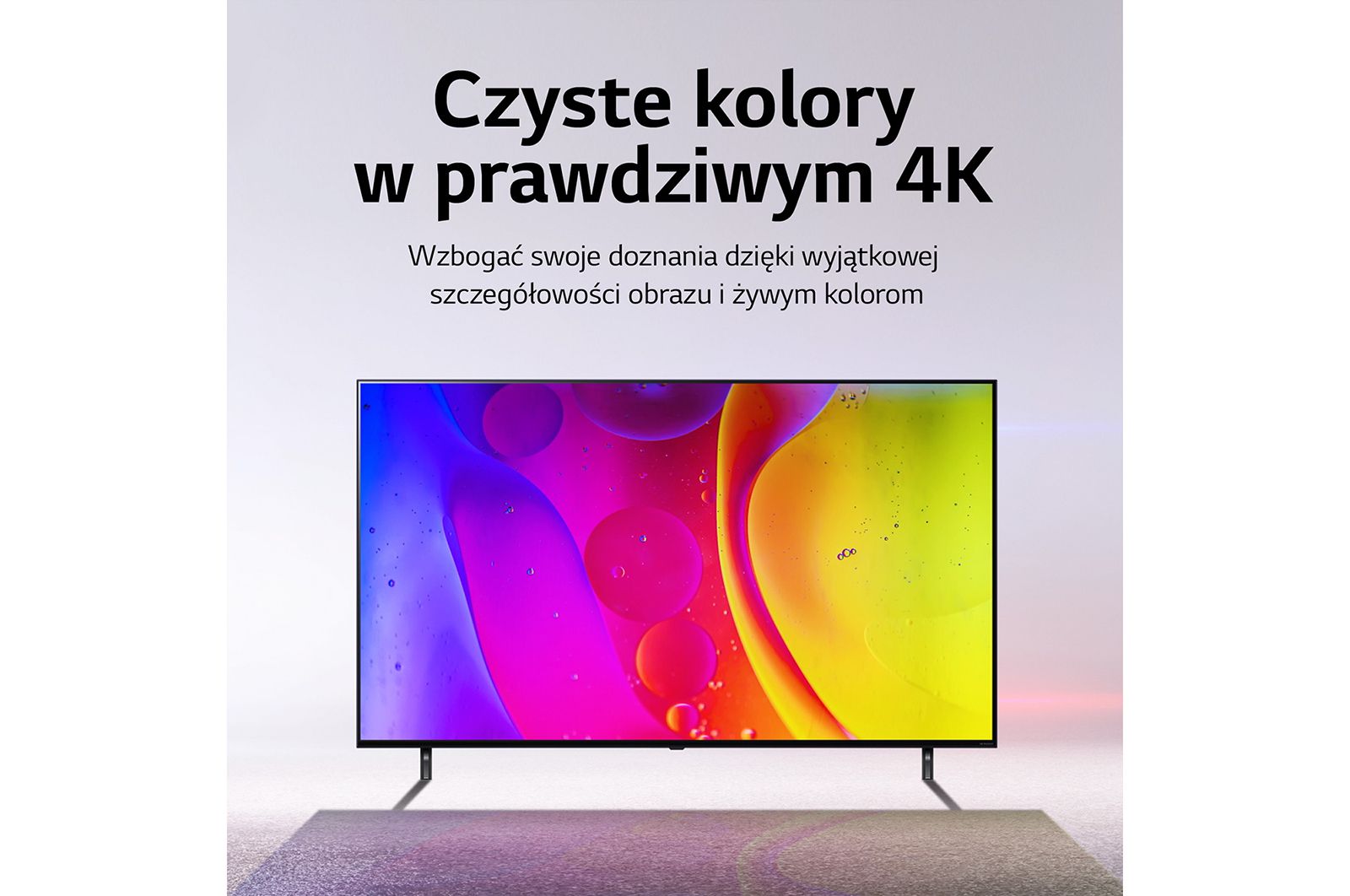 Телевізор LG 65NANO82 — це неперевершене зображення та вражаючий звук у вашому домі. Завдяки **технології NanoCell** ви отримуєте чисті кольори в якості 4K, що дарує особливу яскравість та насиченість зображення на великих екранах. Діагональ екрана складає 65 дюймів, а роздільна здатність 3840x2160 пікселів забезпечує деталізацію, яку ви не залишите без уваги.