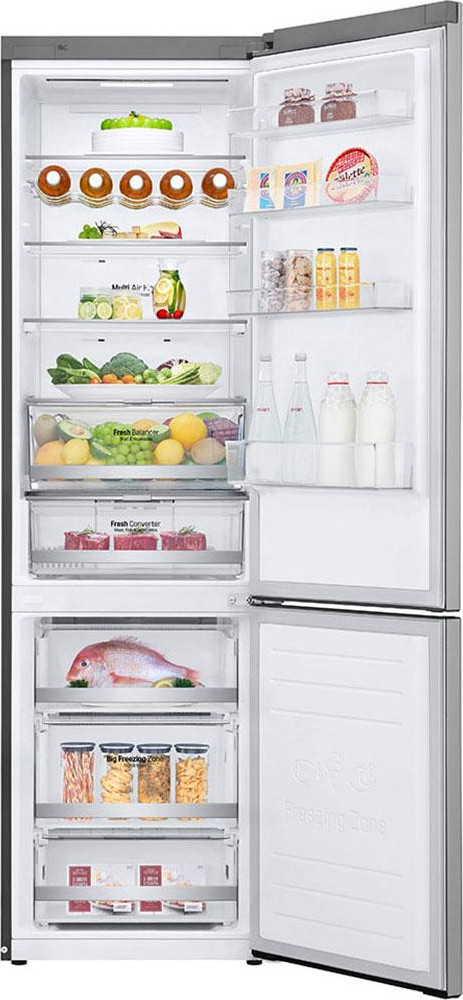 Холодильник LG GBB62PZHMN — це стильний та функціональний пристрій для вашої кухні, створений для зручності та збереження продуктів. Він має **холодильну камеру** об'ємом 277 л та **морозильну камеру** на 107 л з **означенням No Frost**, що забезпечує бездоганну роботу без необхідності розморожування.