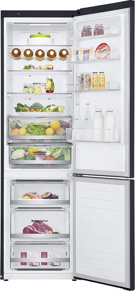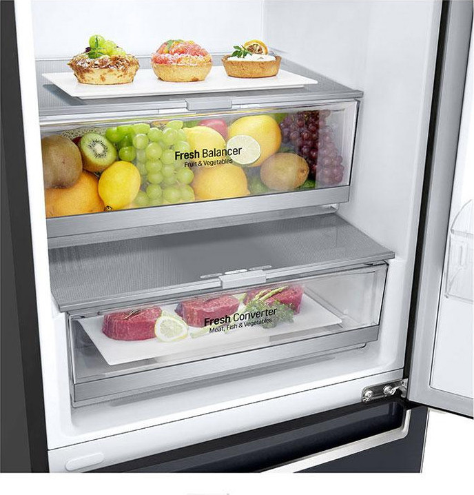 Крім того, в LG GBB72MCDMN реалізовано багаторівневу систему охолодження multiAirflow, що забезпечує рівномірний розподіл холоду по всьому об'єму. Функції SuperFreezing та суперохолодження дозволяють швидко заморожувати та охолоджувати продукти, зберігаючи їх свіжість та смакові якості.