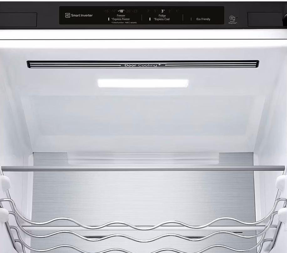 Внутрішня структура холодильника включає **шість полиць з скла**, три відділення у морозильній камері, а також **LED освітлення** для зручності. Холодильник також обладнаний датчиками **FreshSense**, які постійно контролюють температуру в усіх відділеннях. У разі потреби двері можна легко переналаштувати під Ваш інтер'єр. Виберіть LG GBV5240DEP для комфорту та сучасних технологій на вашій кухні!