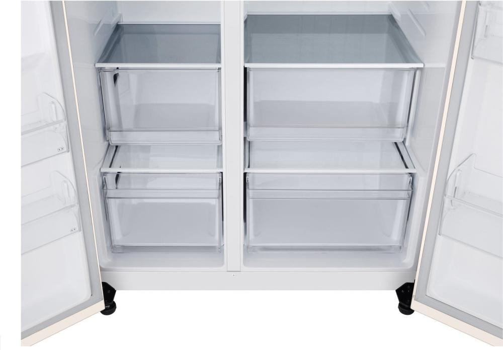 Модель оснащена технологією NoFrost, яка запобігає утворенню льоду в морозильній камері, що дозволяє зекономити час на розморожування. Холодильник має розміри 91.3 x 179 x 73.5 см і представленій у елегантному бежевому кольорі, що впишеться в будь-який інтер'єр.
