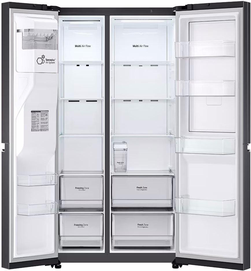 Ознайомтеся з холодильником LG GSJV71MCTE, який поєднує в собі стиль і сучасні технології. Цей окремостоячий холодильник з морозильною камерою має загальний об'єм 707 літрів, з яких 416 л відводиться під холодильну камеру, а 291 л — під морозильну. Навіть під час тривалого використання ви можете розраховувати на безпроблемне зберігання продуктів завдяки системі No Frost, яка запобігає утворенню інею.