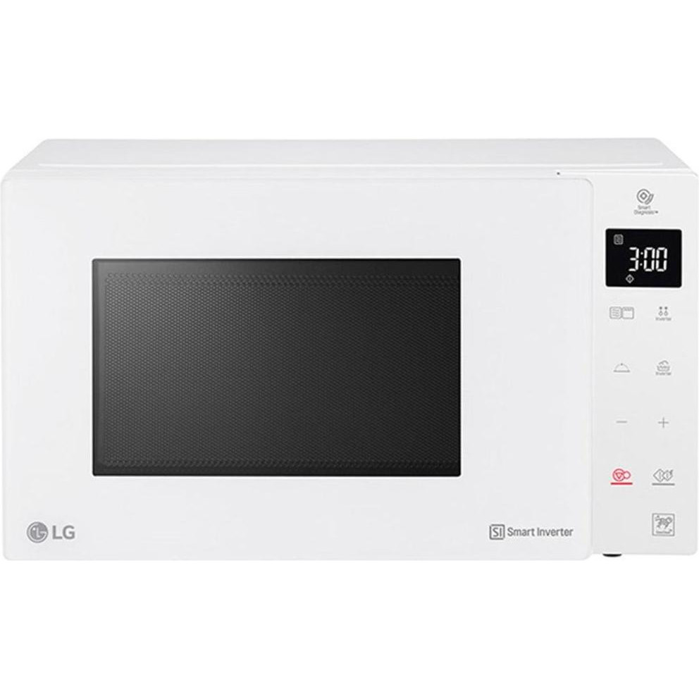 Пристрій виконаний в елегантному білому кольорі та має розміри 47,6 x 27,2 x 38,8 см, що робить його універсальним у використанні на кухні. Відкривається мікрохвильова піч за допомогою кнопки, що додає зручності у використанні.