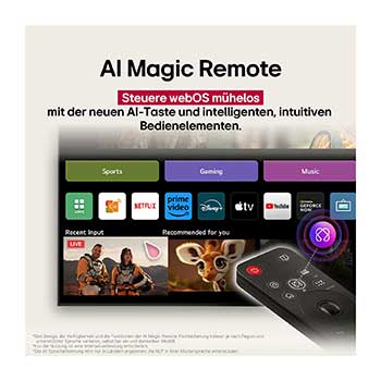 Усередині телевізора працює Alpha 11 Gen2 4K AI процесор, що відповідає за оптимізацію зображення та звуку, а Dolby Vision та Dolby Atmos додають кінематографічну атмосферу до вашого перегляду. Операційна система webOS 25 разом із AI Magic Remote забезпечують легкість у використанні, пропонуючи інтуїтивно зрозуміле управління та доступ до різноманітних додатків.