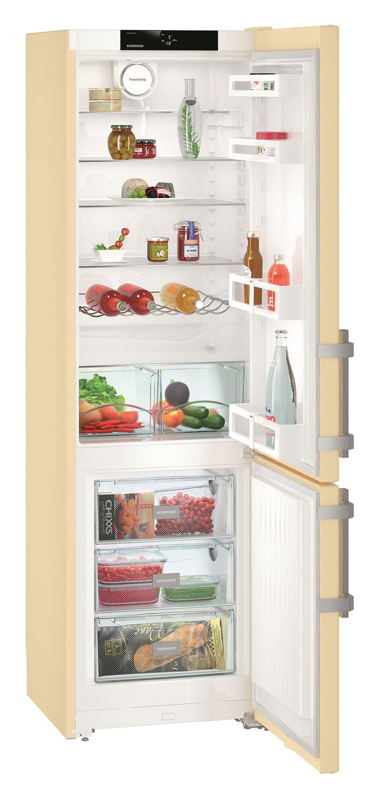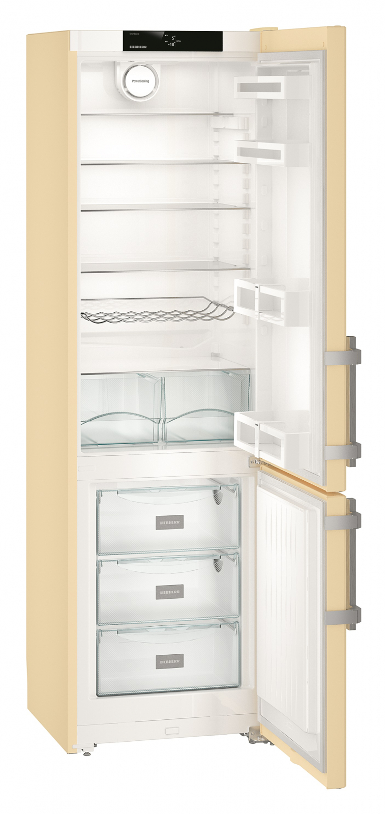 Крім того, Liebherr Cbe 4025 має **сенсорний дисплей** для зручного управління, а також функцію **FrostControl**, що інформує про стан морозильної камери. Система **VarioSpace** забезпечує гнучкість у розміщенні продуктів, дозволяючи легко регулювати полиці згідно з вашими потребами. Холодильник також обладнаний **оптичними та акустичними сигналізаціями** для відкритих дверей.