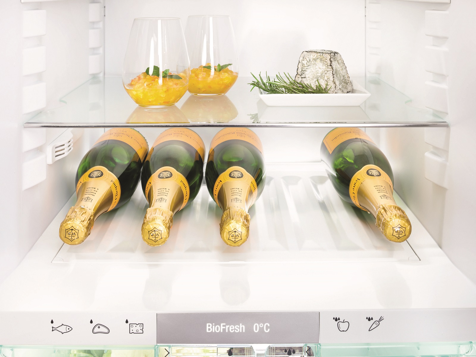 Завдяки **системі NoFrost**, ви забудете про потребу в розморожуванні, а **технологія BioFresh** зберігає свіжість овочів і фруктів до трьох разів довше. Додатково, функція **SuperCool** швидко охолоджує щойно придбані продукти, запобігаючи їх псуванню. Ви також зможете налаштовувати два окремі температурні зони завдяки **DuoCooling**.