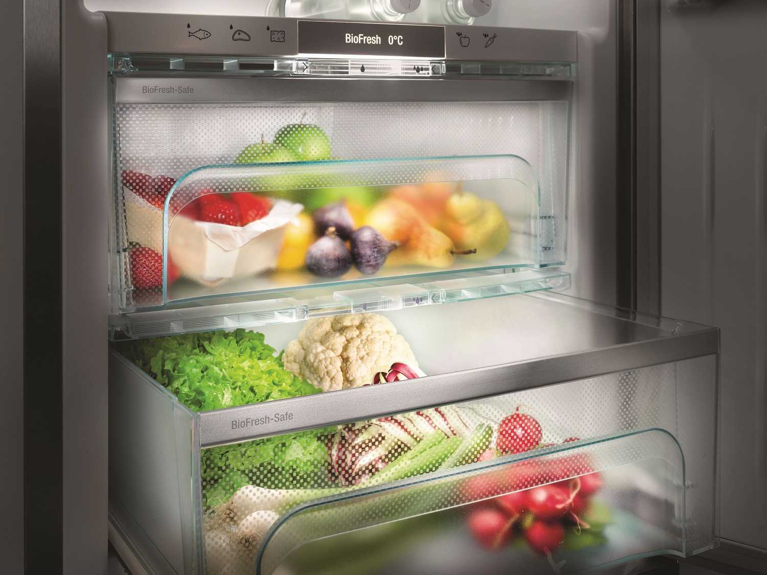 Завдяки **тихому рівню шуму всього 37 дБ** та функції SoftSystem, двері холодильника закриваються плавно та безшумно, забезпечуючи комфорт у користуванні. Більш того, в холодильнику присутні **контейнери BioFresh** і **VarioSpace**, що сають можливість легко організувати простір усередині.