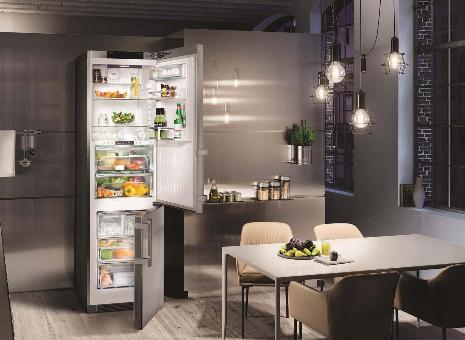 Холодильник Liebherr CBNPes 4878 – це ідеальний вибір для сучасної кухні, що поєднує в собі стильний дизайн і передові технології. Цей двокамерний холодильник оснащений системою NoFrost, яка запобігає утворенню інею, забезпечуючи ефективне зберігання продуктів без підмороження. За допомогою технології BioFresh ви зможете зберігати свіжість овочів і фруктів до трьох разів довше, а BioFresh-Plus дозволить досягти ще кращих результатів.