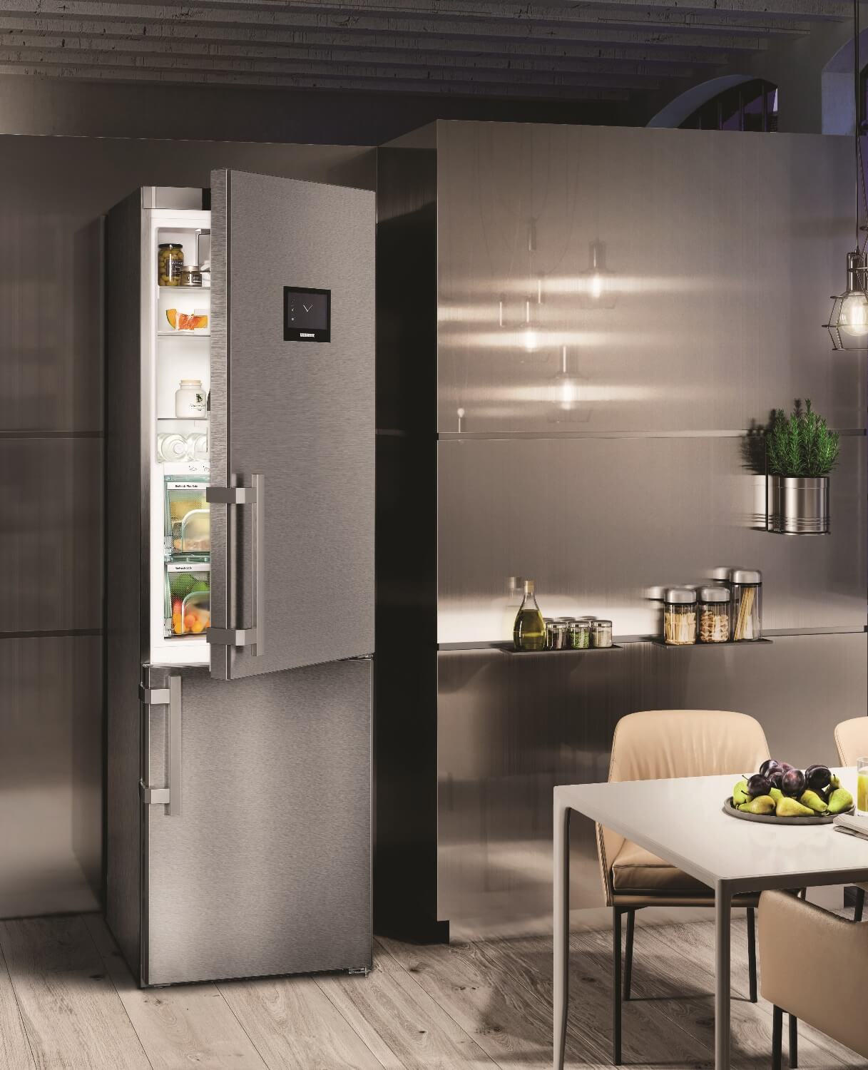 Сенсорний дисплей робить управління приладом зручним і інтуїтивно зрозумілим. SmartSteel покриття дверей забезпечує легкість у догляді, бо не залишає відбитків пальців. Завдяки автоматичному розморожуванню холодильних і морозильних камер, вам не доведеться витрачати час на ручну обслугу.