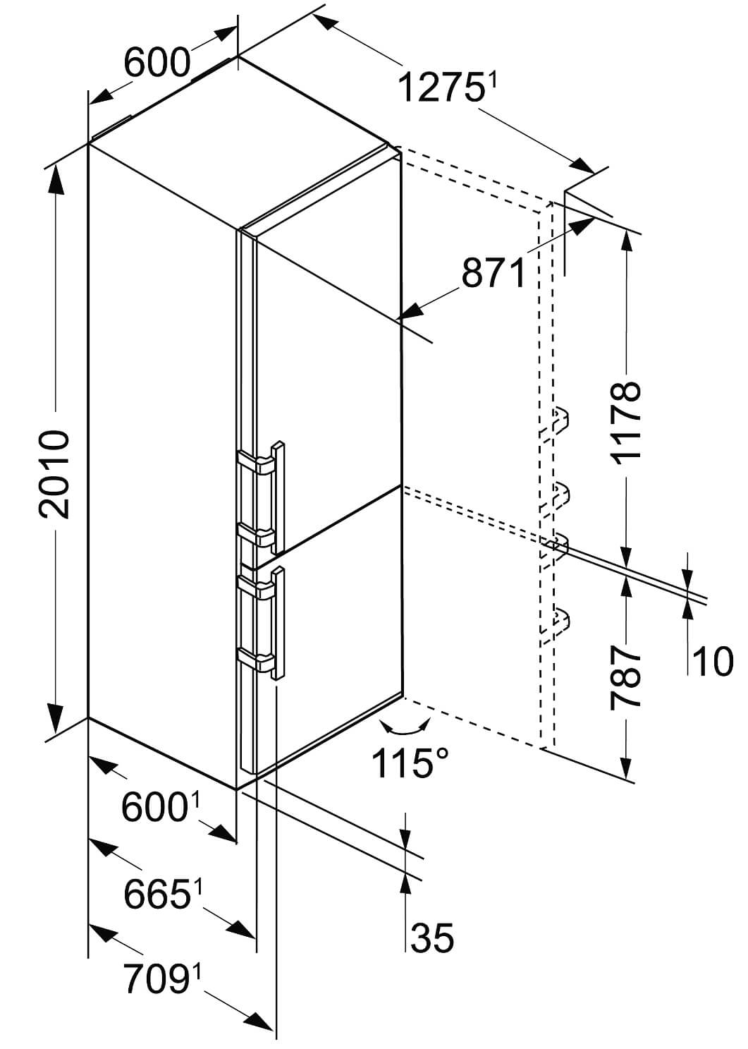 Габарити холодильника складають 201 см у висоту, 60 см у ширину та 66.5 см у глибині. З корисним об'ємом 338 л та рівнем шуму всього 37 дБ, Liebherr CBNPes 4878 стане надійним супутником кожної господині, забезпечуючи комфорт і естетику на вашій кухні.