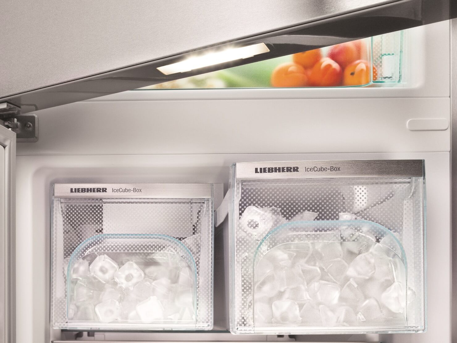 Модель має потужний IceMaker, який виробляє до 1.2 кг кубиків льоду за добу, а VarioSpace забезпечує гнучкість у використанні простору морозильної камери. SuperCool і SuperFrost функції швидкого охолодження та заморожування допоможуть швидко охолодити або заморозити свіжі продукти. Холодильник також має DuoCooling, що запобігає змішуванню запахів між камерами.