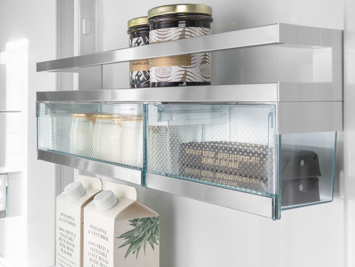 Крім того, холодильник обладнаний Сенсорним дисплеєм для зручного управління, а також функцією SmartDevice, що дозволяє віддалений контроль. Завдяки алюмінієвим ручкам та інтер'єру, оформленому у вигляді SmartSteel, пристрій не лише функціональний, а й естетично привабливий.