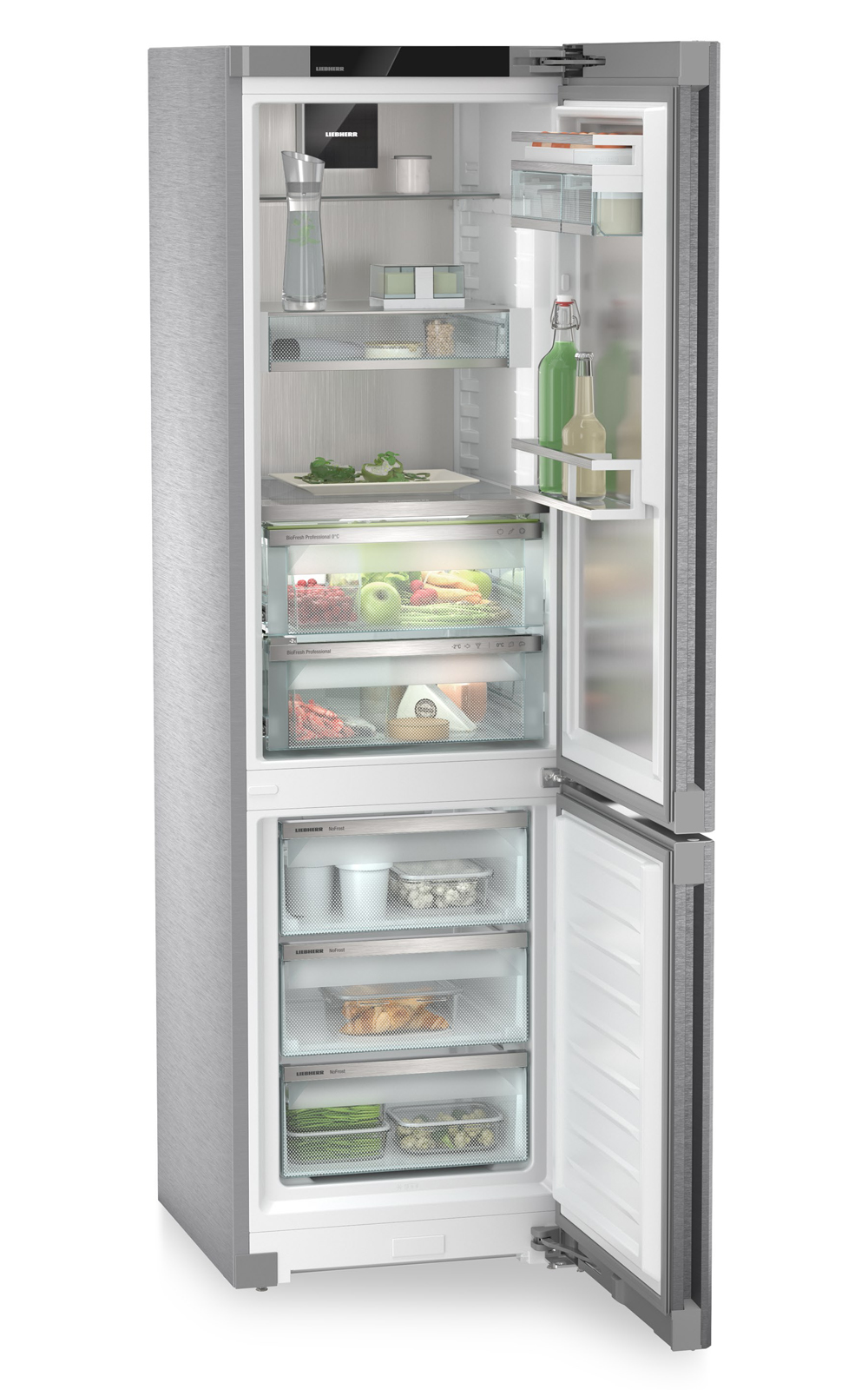 Комфорт у використанні забезпечується сенсорним дисплеєм, а система FrostControl допомагає точно контролювати температуру. Об'єм холодильника складає 382 л, з яких 251 л – для свіжих продуктів, а 94 л – морозильна камера. Чудова функція SuperCool дозволяє швидко охолоджувати новозавезені продукти.