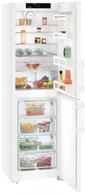 Льодогенератор з лотком для кубиків льоду, число полок, які регулюються за висотою, а також можливість перенавішування дверей роблять Liebherr CN 3915 надійним помічником у вашому домі.