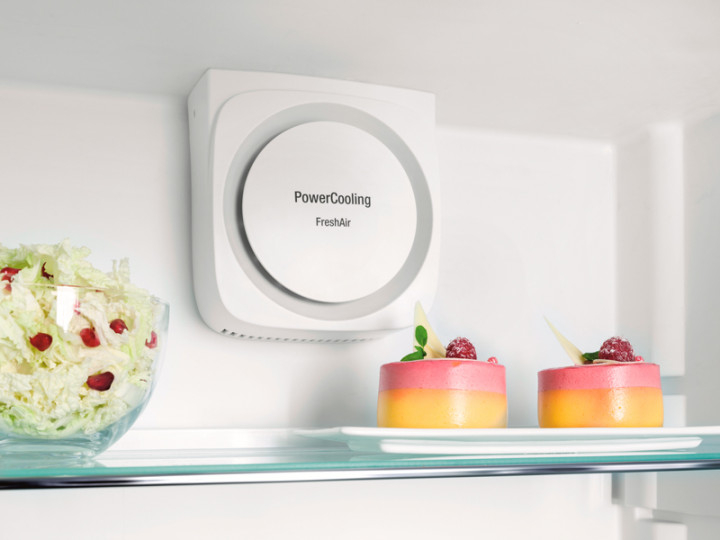 Холодильник також має енергоефективний клас A+++, що забезпечує низьке споживання енергії – лише 165 кВт/год на рік. У ньому передбачено SmartDevice функцію для зручності використання, а також FrostControl, що дозволяє контролювати стан морозильної камери.