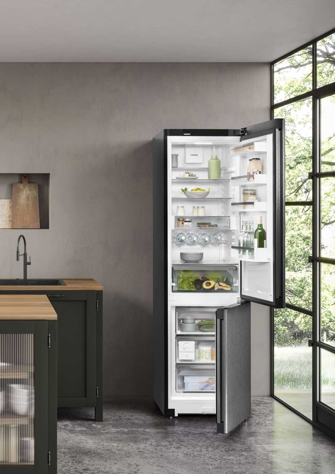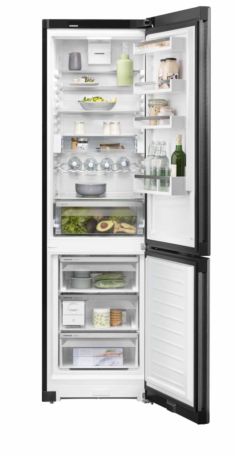 Холодильник Liebherr оснащений передовими технологіями, такими як NoFrost, що забезпечує автоматичне розморожування, і DuoCooling, яка підтримує оптимальний мікроклімат в обох камерах. Завдяки системі FrostSafe, продукти в морозильнику завжди будуть в безпеці. EasyFresh дозволяє зберігати свіжість овочів та фруктів на довгий час.